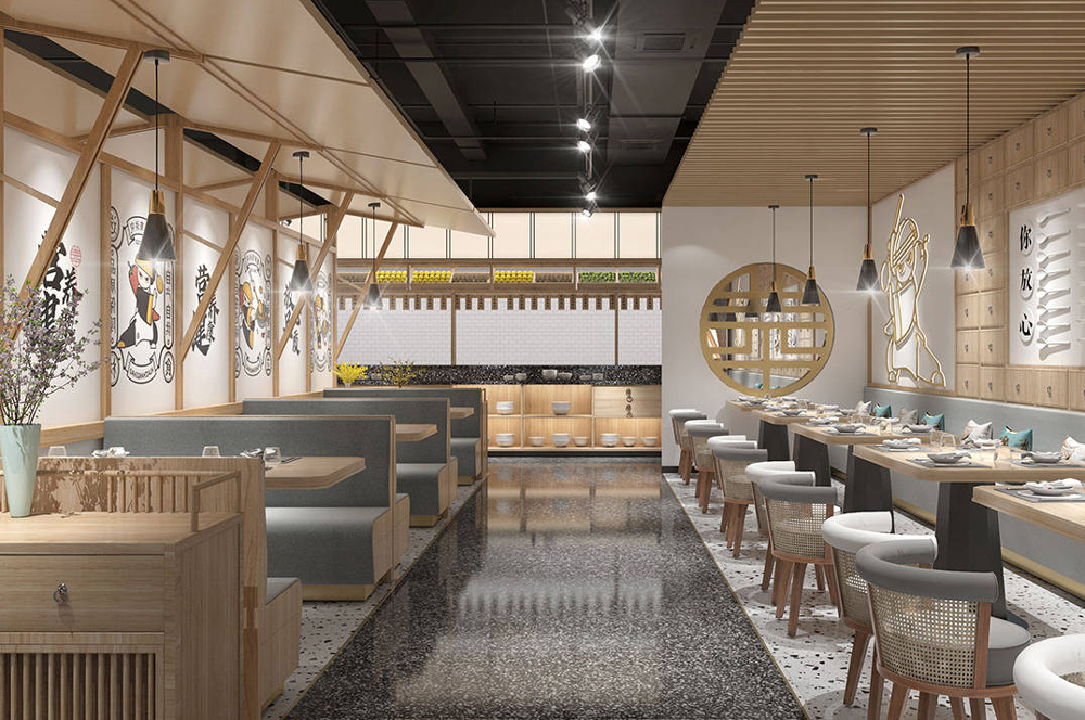 餐飲店裝修中合理的照明設計可以改善空間關系,通過照明度及色溫、樣式可以引導空間次序,可令空間與空間之間呈現出層次感,通過對照明明暗度的變化,餐飲裝修細節部分更容易被表現出來成為主角,而這些細節都是很少人發現的,但在某個聚焦位置如果被體現,那么必然是搶眼的視覺中心。