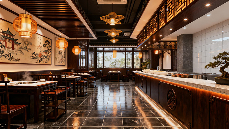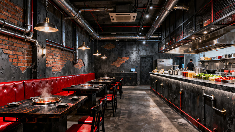 火鍋店的裝修風格直接反映品牌的定位和調性。“大氣”的裝修(通常表現為空間開闊、材質考究、設計協調、細節精致)能向顧客傳遞??“品牌有實力、品質有保障”??的信號。
